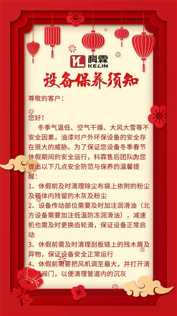 (送上设备春节休假期间保养温馨提醒)